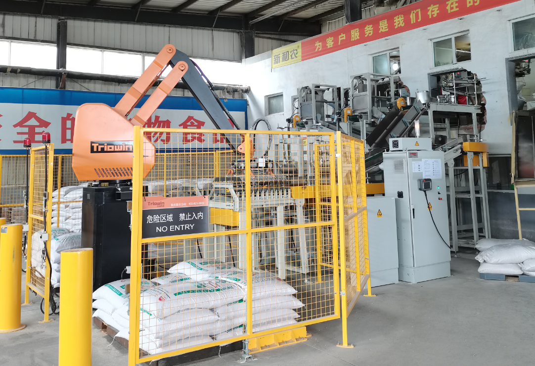 隨著國內(nèi)產(chǎn)業(yè)結(jié)構(gòu)調(diào)整,畜牧行業(yè)轉(zhuǎn)型升級、新常態(tài)發(fā)展機遇期,加上和農(nóng)牧業(yè)集團的創(chuàng)新式發(fā)展,在生產(chǎn)車間成品接包區(qū)引入自動化設備碼垛機器人。