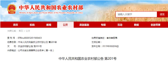 農(nóng)業(yè)農(nóng)村部發(fā)布公告第201號,公布了第一批3436家非洲豬瘟自檢合格的生豬屠宰企業(yè)名單。公告要求各地要及時(shí)將公布的生豬屠宰企業(yè)名單與動物檢疫證明電子出證系統(tǒng)關(guān)聯(lián)。自2020年1月1日起,未與動物檢疫證明電子出證系統(tǒng)關(guān)聯(lián)的生豬屠宰企業(yè),將無法獲取動物產(chǎn)品檢疫。