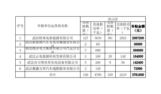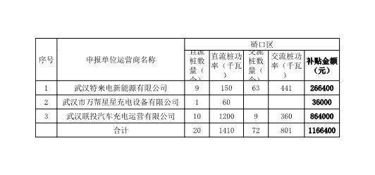 北極星儲能網(wǎng)訊:北極星儲能網(wǎng)獲悉,日前武漢市發(fā)改委發(fā)布了關于武漢市2018年新能源汽車充電基礎設施擬發(fā)放補貼的公示,公示中指出經(jīng)初審、
