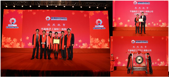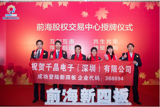 3月19日下午,千晶電子(深圳)有限公司在資本中國基地支持下,在深圳前海股權交易中心舉行新四板掛牌儀式。