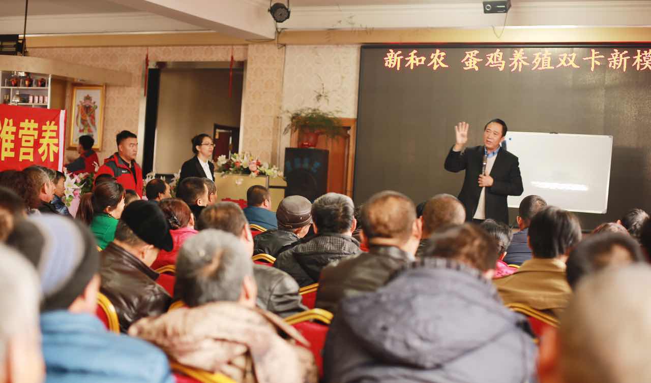 新和農(nóng)蛋雞養(yǎng)殖“雙卡新模式”推介會在黑龍江省雙城、安達、肇州等地多次召開,每場參會養(yǎng)殖戶達80人以上。