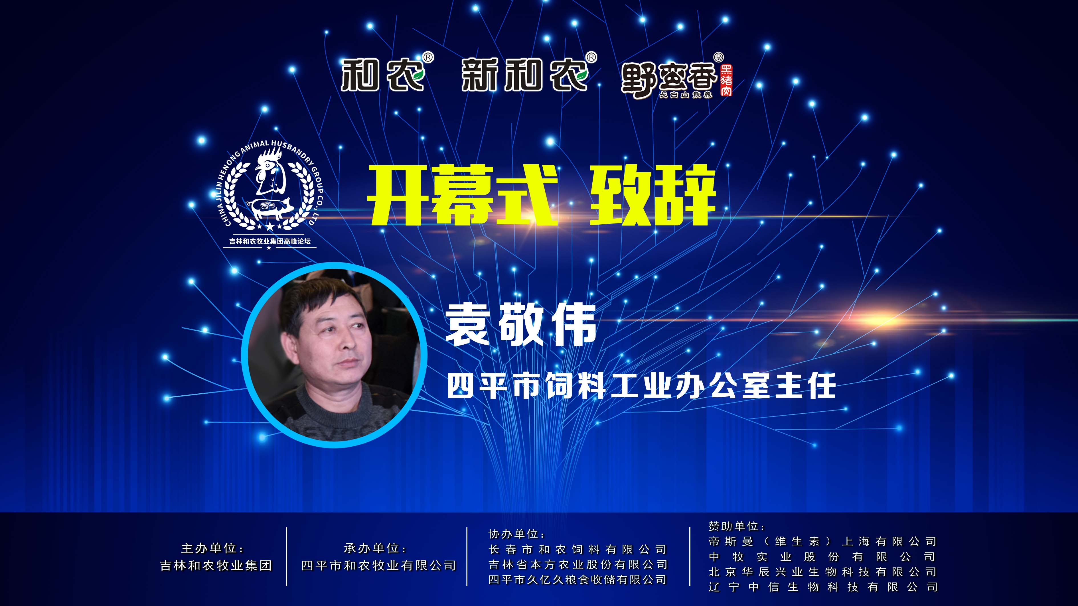第十四屆和農(nóng)牧業(yè)集團社群經(jīng)濟、共享模式高峰論壇在美麗的英雄城四平市召開,飼料工業(yè)辦公室主任袁敬偉先生代表四平市農(nóng)村工作委員會、四平市飼料辦對各位領(lǐng)導(dǎo)和專家的到來表示熱烈的歡迎,對和農(nóng)為四平市經(jīng)濟發(fā)展做出的重大貢獻表示衷心的感謝!