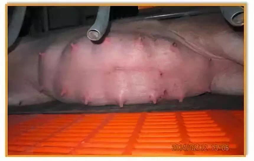 圖1.夜間無人接產(chǎn)時可以在臨產(chǎn)母豬后軀掛上保溫?zé)?/span>