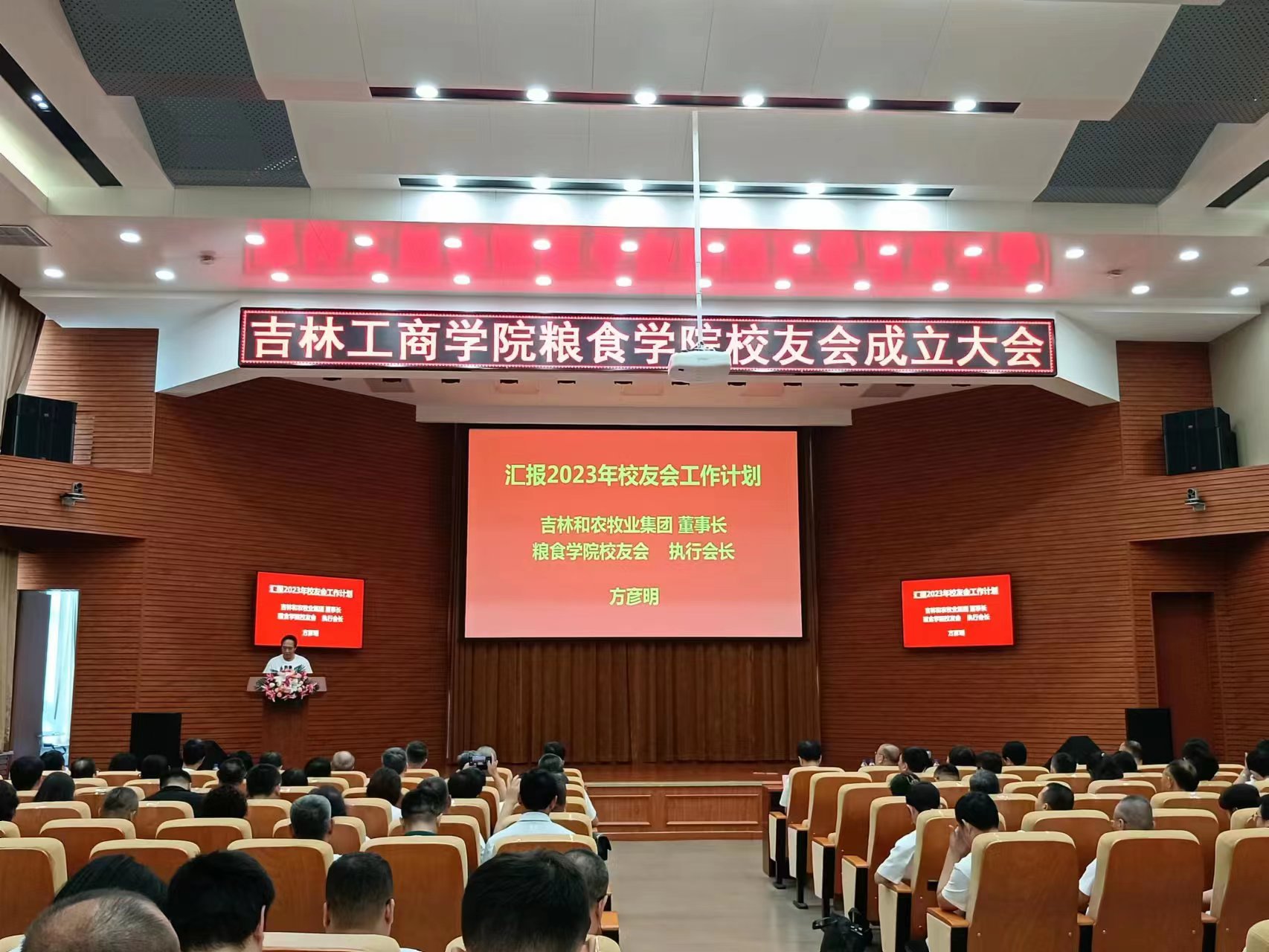 糧食學院校友會執(zhí)行會長、糧食工程專業(yè)8104班校友、吉林省和農(nóng)牧業(yè)集團董事長方彥明先生向大會匯報糧食學院校友會2023年工作計劃。